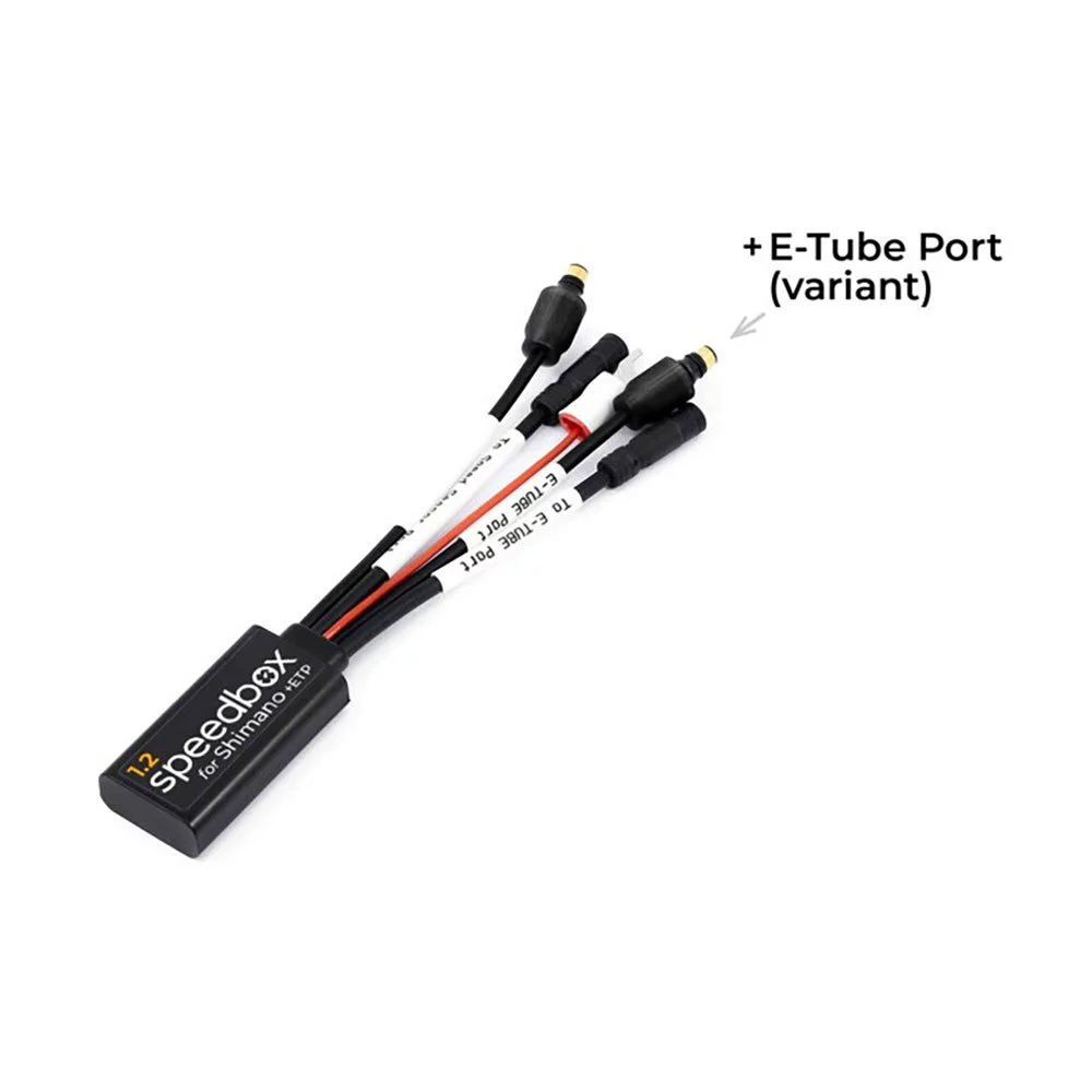 The SPEEDBOX 1.2 Shi E8000/E7000/E6100/E5000+Etp Speedbox Black is a high-quality electronic device redefining electric bike performance. The innovative system is designed to work with Shimano’s E8000, E7000, E6100, and E5000+Etp e-bike motors, enabling an increase in pedal-assist speed and enhancing the biking experience. The device installs easily on the bike’s engine and is compatible with batteries for E-bikes.The SPEEDBOX 1.2 enhances the e-bike’s performance by providing a significant increase in the pedal-assist speed. This device is designed to elevate your biking experience to a new level, making your electric bike even more fun to ride. The device is easy to install and use, and its tiny form factor allows for easy placement on the bike. With the SPEEDBOX 1.2 equipped on your bike, you can accelerate easily, cruise at high speeds, and tackle steep hills and rough terrains with confidence.The Speedbox also integrates seamlessly with other bike parts, engines, and batteries to enhance the biking experience. With its sleek black finish, it adds minimal bulk and looks great on any bike. The SPEEDBOX 1.2 Shi E8000/E7000/E6100/E5000+Etp Speedbox Black is a must-have for e-bike enthusiasts, providing them with a versatile and efficient system that makes exploring new terrains much more fun.