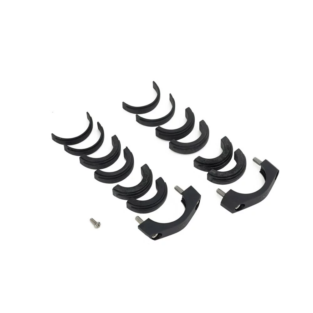 Display Holder Mounting Kit for Intuvia and Nyon, including 4 x clamping screws, 2 x clamps, 1 x locking screw and 3 x 4 rubber spac ers (31.8 mm, 25.4 mm, 22.2 mm).