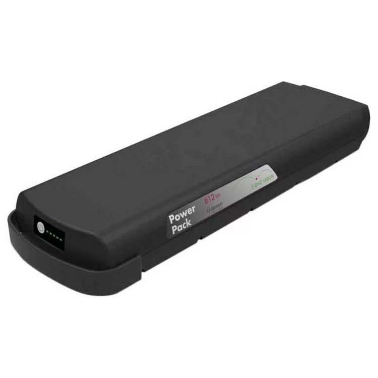 – The bicycle battery can be charged with the original charger, but also with the E-bike Vision Charger 36V 4A (article 656118) or E-bike Vision Fast charger 36V 7A.