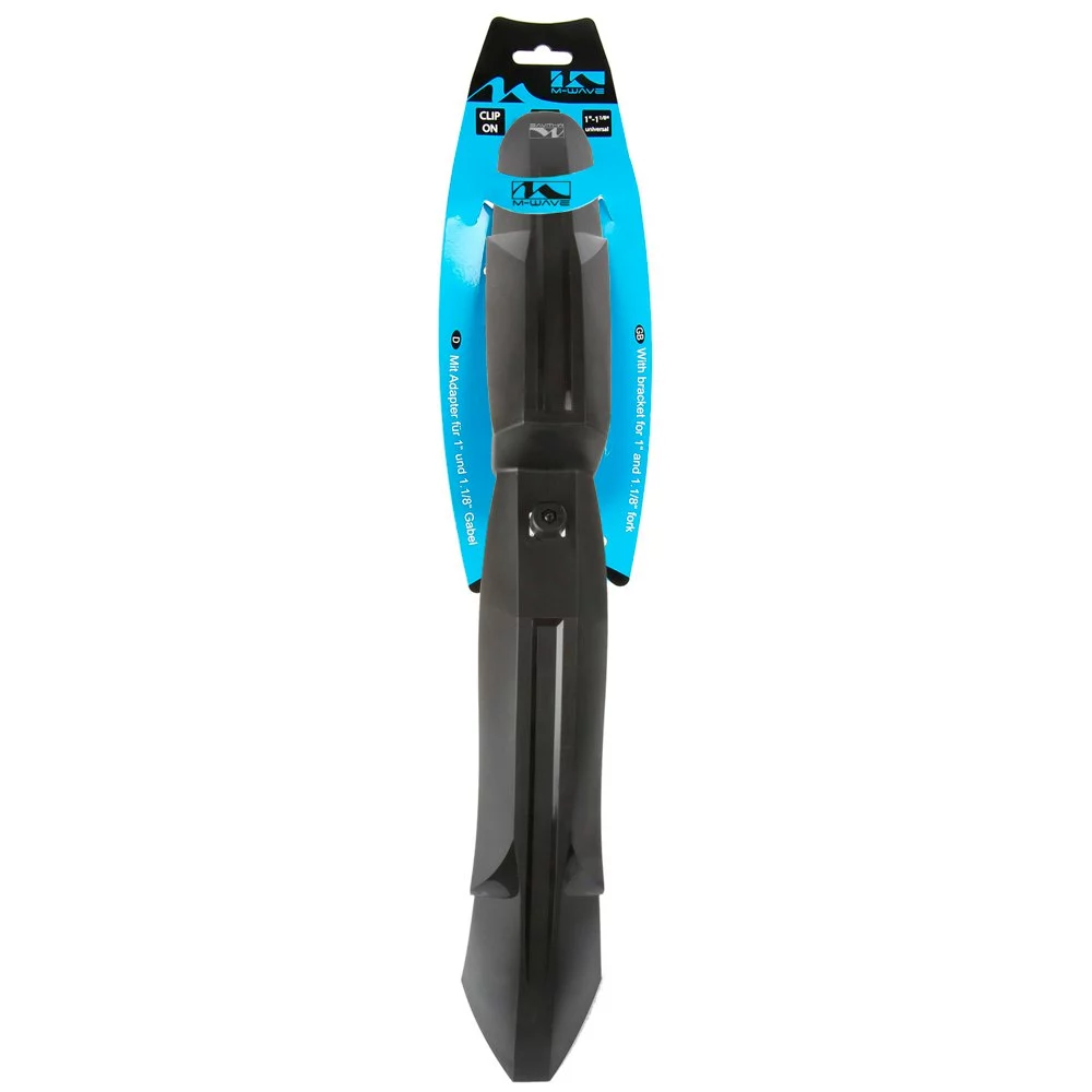 Mudguard, M-WAVE ´´MUD MAX F II´´, 26´´-29´´, front, width 95 mm, plastic, black, with CLIP-ON bracket for front fork innertube, suitable for dia.