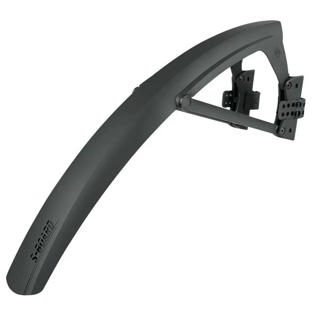 Smart clip-on front mudguard for road, cyclocross, hybrid, gravel bikes etc. for max. tyre width up to 38 mm. It is the ideal companion to our S-BLADE rear mudguard. Its smart, double hinged quick release fitting system also fits aero forks. Paintwork protection film for the frame is included.