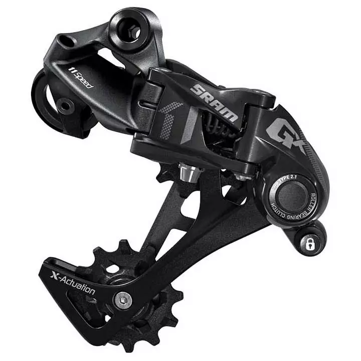 SRAM Rear Derailleur GX2X11-speed, X-Actuation, type 3aluminium cage, Roller Bearing Clutch Technology to regulate the chain tension, cage lock for simple wheel exchangeSpecification:Group:DerailleurType:GX BlackSize:+/- 289 gram / 2x11VCategory:00.7518.082.000Specifications:Rear Long Kind X-Actuation.
