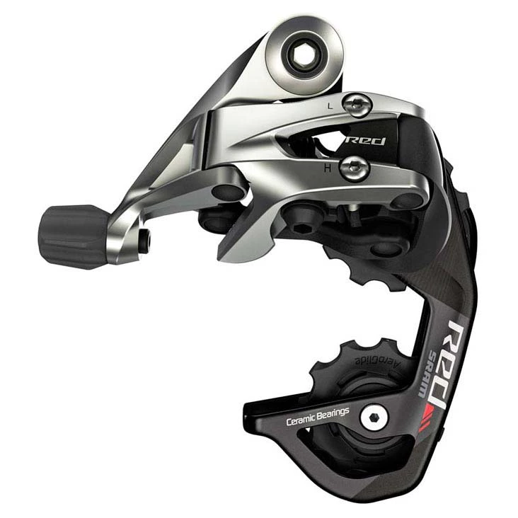 The result adds to its legacy as the heart of the purest groupset for the pursuit of cycling excellence.Features:- SRAM 11-speed compatible- WiFLi® option- Carbon cages, carbon inner links, titanium hardware- Exact Actuation® shifting provides fast and accurate shifts- More clearance with 28t cassettes thanks to a longer B-knuckle- Silent shifting with optimized AeroGlide® pulleys, ceramic bearings- Spring-fixed barrel adjuster- Chain pulley cage adds precise chain management- Titanium pinch bolt keeps a low profile while minimizing weightSpecifications:- Speeds:11- Material:Carbon cages, Carbon inner links, Aero designed titanium hardware- Weight:145g (short cage), 165g (mid cage)- Compatibility:SRAM RED® & Force Rear Shift-Brake levers, SRAM R2C Aero SL-1190 shifters, SRAM R2C Aero SL-1150 shifters, SRAM 900 Aero brake levers, SRAM 500 Aero brake levers- Finish:Falcon grey & black anodized- Technology Highlight(s):AeroGlide Pulleys®, Exact Actuation®Technology:AeroGlide Pulleys®:- New tooth pulley design with a sound damping effect for a super efficient and silent ride experience.