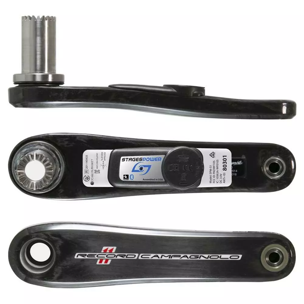 The new single-sided Stages Power L meter is built on to a non-drive-side Campagnolo Record crank arm and is compatible with Campagnolo Record and Chorus road drivetrains.